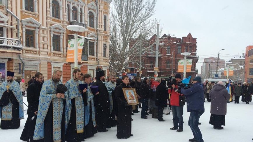 "Мы сегодня исповедуем мир, который должен быть не в рабстве, а миром свободолюбивым. Мы сегодня исповедуем толерантность, уважение друг к другу. Это наши украинские ценности. Этот молебен Божьей Матери сегодня звучит по всей Украине. Очень простые слова молитвы звучат, но я верю, что Божья Матерь всегда будет с нами", - сказал председатель Днепропетровской епархии УПЦ КП Симеон.
