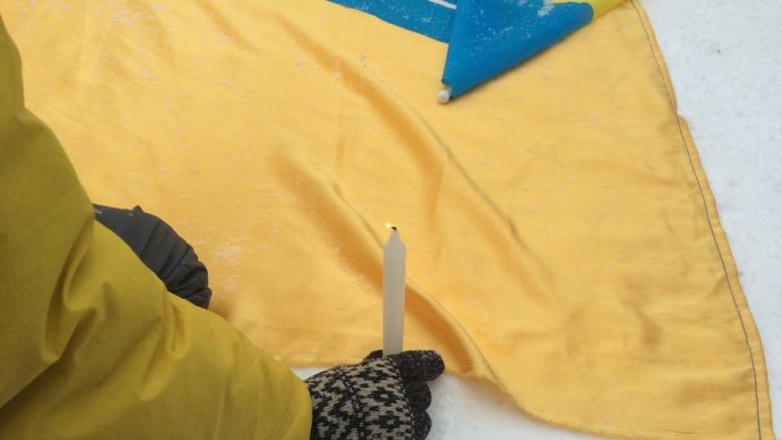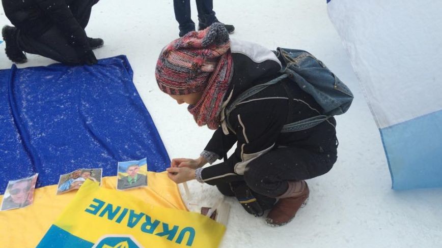 Участники акции вспоминали разгон Майдана в Киеве и нападения на активистов Евромайдана в Днепропетровске. Также активисты развернули 25-метровый украинский флаг с фотографиями героев Небесной сотни и погибших в зоне АТО бойцов и, пройдя шествием по городу, принесли его на Европейскую площадь. Люди встали перед флагом на колени, зажгли свечи и почтили память украинских героев минутой молчания.