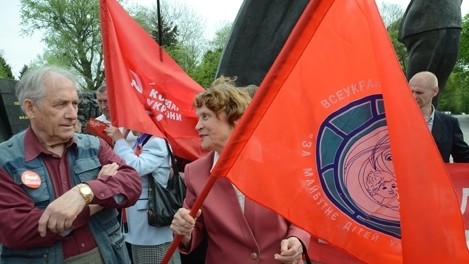Возглавили шествие руководители областных профсоюзов, Днепропетровской облгосадминистрации, мэр города Иван Куличенко. Затем часть демонстрантов - сторонников КПУ осталась на площади для проведения митинга.