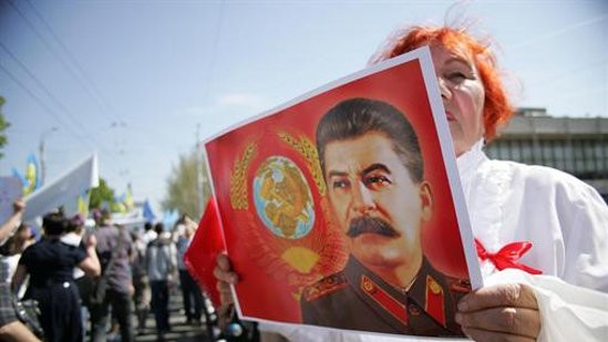 Кроме того, многие участники митинга держали флаги с символикой бывшего СССР и Украинской советской социалистической республики.