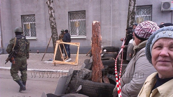 Межде тем, как сообщает местное интернет-издание slavgorod.com.ua, вокруг Славянского горотдела милиции возводят баррикады из шин, деревянных щитов и мешков с песком. За баррикадами стоят горожане, которые поддерживают захвативших здание активистов одобрительными возгласами.
