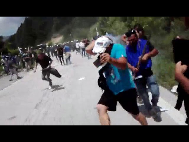 Около 500 демонстрантов, размахивая флагами Греции, отделились от основной массы протестующих (около 5000 человек) и пытались приблизиться к месту подписания соглашения в Преспесе со стороны небольшого селения Пизодери, но были окружены полицейскими в 25 км от церемонии.