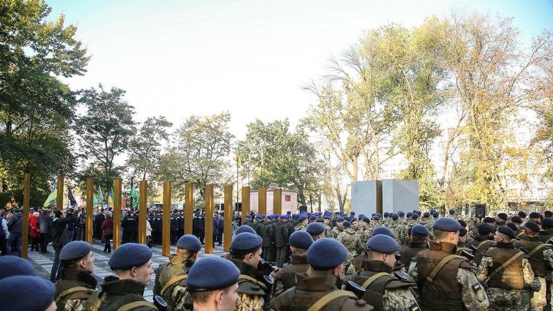 В День защитника Украины в Харькове состоялось торжественное открытие памятника, посвященного всем, кто защищал и защищает страну. Монументальная композиция находится на площади Защитников Украины. Композиция состоит из куба с надписью "Герои не умирают" и 14 металлических стел.