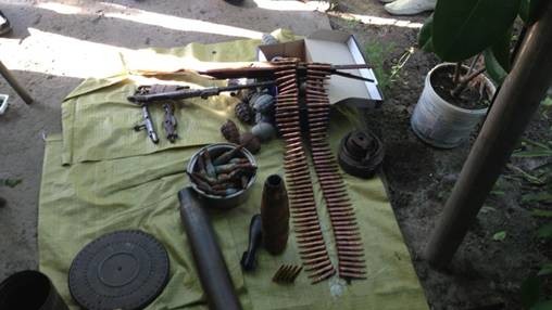 По информации ведомства, в ходе обыска в доме одного из жителей Херсона сотрудники СБУ изъяли 35 гранат и около 400 штук патронов различного калибра, в том числе, 60 бронебойно-зажигательных патронов к противотанковому ружью калибра 14,5 мм, винтовку Мосина и пистолет-пулемет Шпагина.