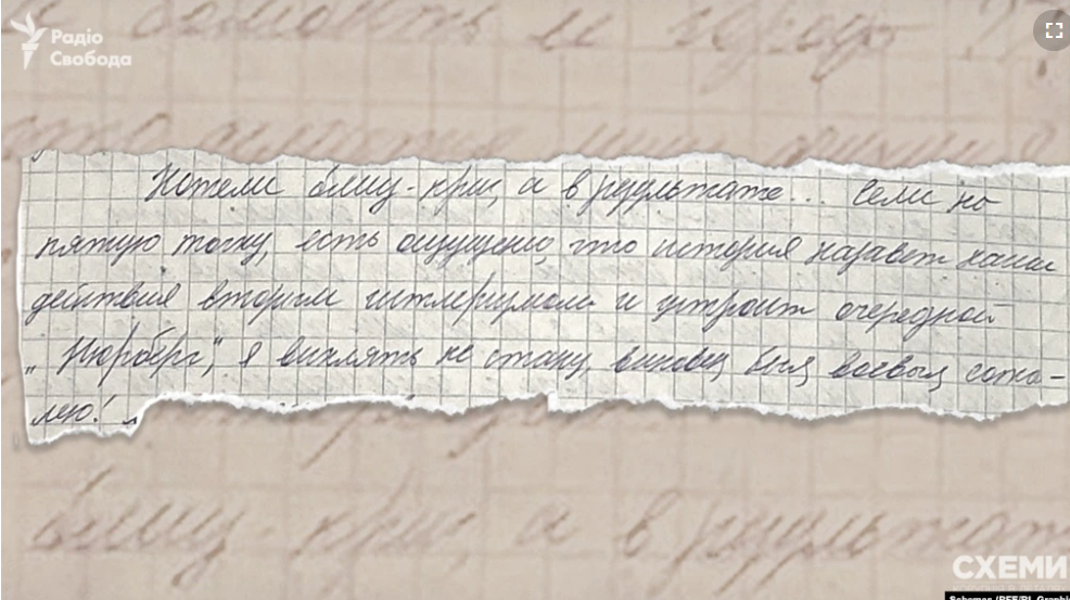 «Наш учитель, моя жена нашла дневник в одном из кабинетов, который вел, скорее всего, один из офицеров. И, притом, скорее всего – юрист или представитель Федеральной службы безопасности (ФСБ) РФ. Там это по контексту можно понять», – рассказал журналистам директор школы Николай Микитчик.