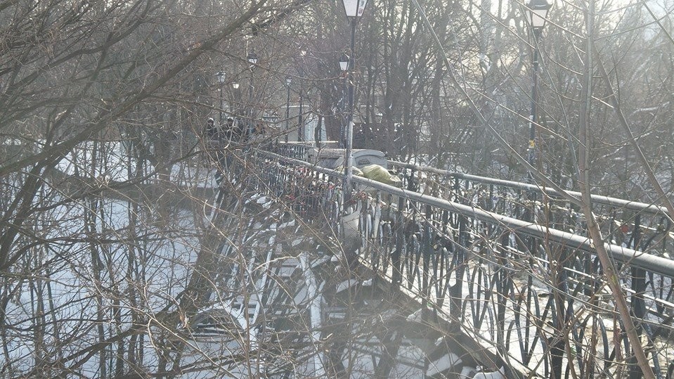 В Киеве частично сгорел мост влюбленных, который проходит над Петровской аллеей в районе стадиона "Динамо" и соединяет две части Мариинского парка.