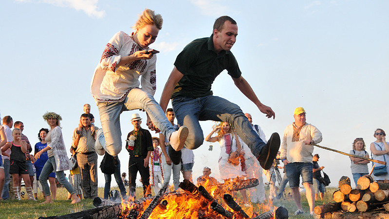 В Киеве вечером 6 июля и в ночь на 7 июля отмечали старинный праздник Ивана Купала. Гуляния прошли в Национальном музее народной архитектуры и быта Пирогово. Несмотря на рабочий день, на празднование пришло довольно много людей. Присутствовало много молодежи и семей с детьми.