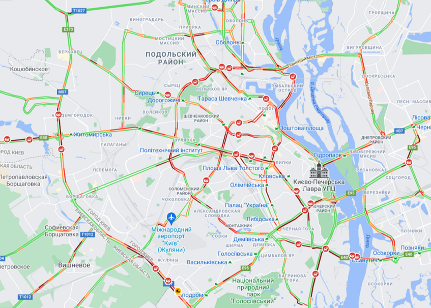 На данный момент транспортная ситуация в столице выглядит так. Пробки образовались на Большой окружной дороге, бульваре Дружбы Народов, проспекте Победы, Столичном шоссе, проспекте Степана Бандеры, Крещатике, улицах Вячеслава Черновола, Елены Телиги, Сечевых стрельцов.