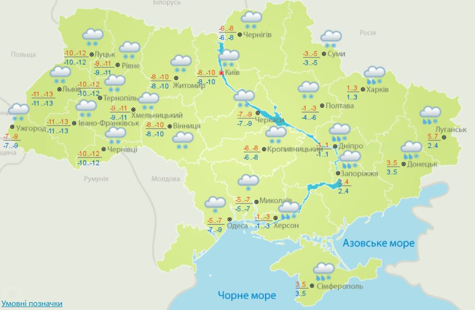 Днем 11 февраля и ночью 12 февраля в Киеве ожидается значительный снегопад.