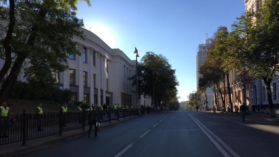 Народный депутат Алексей Рябчин на своей странице в Twitter сообщил о том, что Грушевского перекрыли из-за митинга медиков, которые протестуют против медицинской реформы.