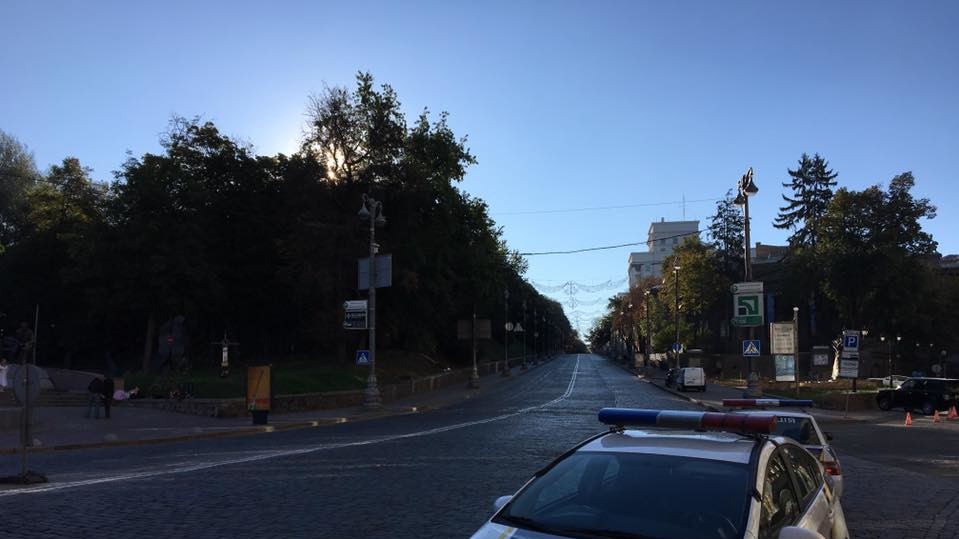 В Киеве перекрыли улицу Грушевского и установили рамки металлоискателей. Автомобили на Европейской площади и площади Славы стоят в пробках.