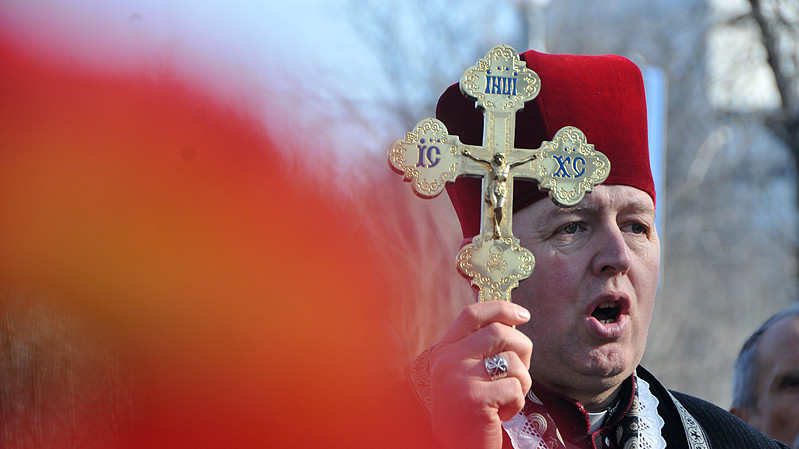 В Михайловском золотоверхом соборе патриарх киевский и всей Руси-Украины Филарет отслужил поминальный молебен по погибшим участникам Революции Достоинства. В панихиде принимали участие члены семей героев Небесной Сотни, а также президент Украины Петр Порошенко с супругой, премьер-министр Владимир Грйосман и глава АП Игорь Райнин.