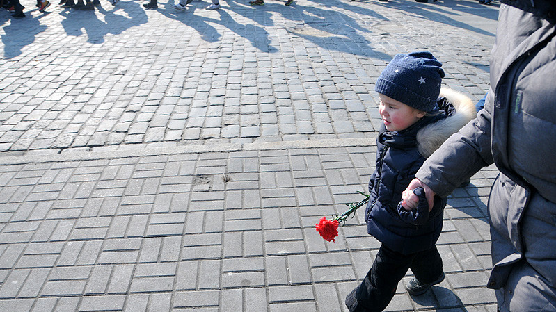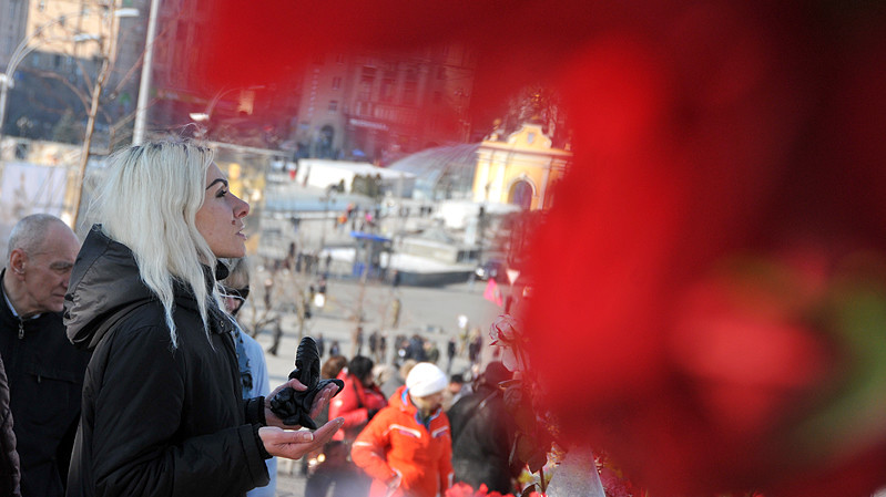 В течение дня киевляне и гости города приносили цветы и венки к кресту и портретам погибших на Аллее Героев Небесной Сотни на улице Институтской в Киеве. Вечером к монументу пришли участники молебного хода, в котором приняли участие несколько сотен человек.