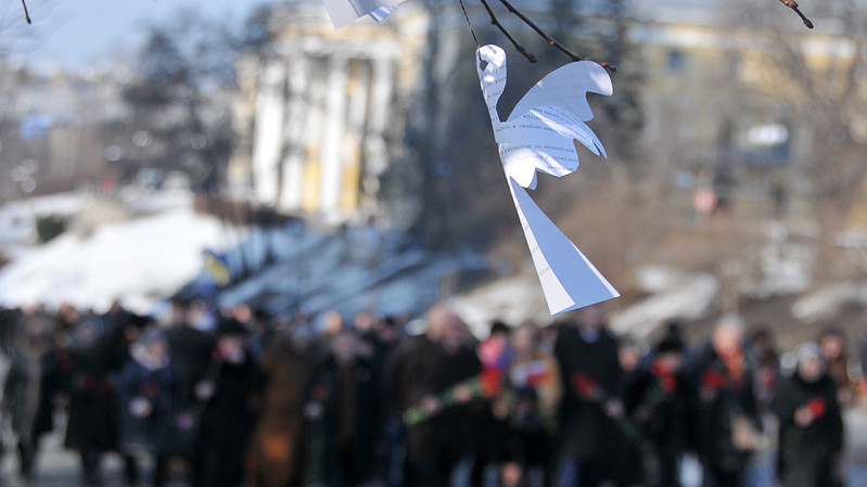 В Киеве в понедельник, 20 февраля, состоялись мемориальные мероприятия, посвященные третьей годовщине расстрелов участников Революции Достоинства.