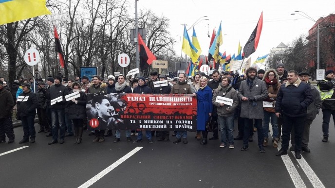 В Киеве в воскресенье, 3 декабря, проходит "Марш за импичмент", инициированный экс-главой Одесской ОГА, лидером партии "Рух новых сил" Михеилом Саакашвили и его соратниками.