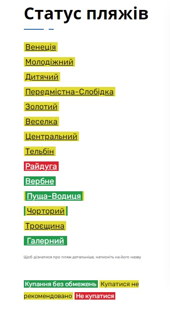 По информации столичных коммунальщиков, купание без ограничений разрешено на пляжах "Вербное", "Пуща-Водица" и "Галерный".