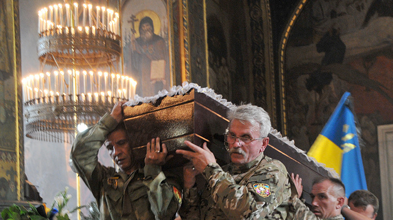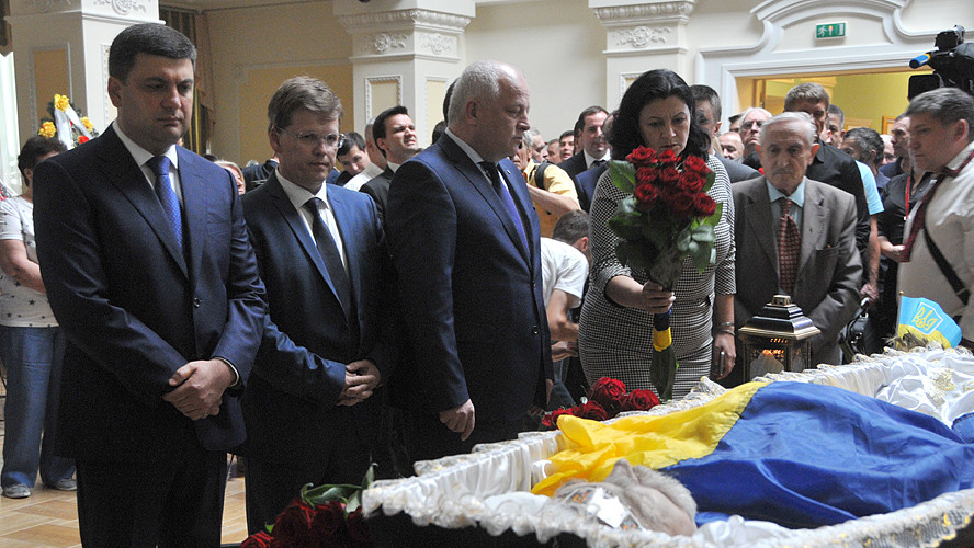 В клубе Кабинета министров Украины состоялось публичное прощание с Героем Украины, бывшим диссидентом и политзаключенным, политиком и писателем, автором Акта провозглашения независимости Украины Левком Лукьяненко. Отдать последнюю дань уважения пришли родственники и друзья Лукьяненко, первые лица государства, побратимы, которые вместе с ним в 70-х годах сидели в советских тюрьмах, и коллеги, с которыми он провозглашал независимость Украины. Под зданием клуба собралось около тысячи людей, чтобы проститься с Левком Лукьяненко. Затем во Владимирском соборе состоялось отпевание, на которое явился президент Петр Порошенко с супругой. Похоронили Левка Лукьяненко на Байковом кладбище в Киеве.