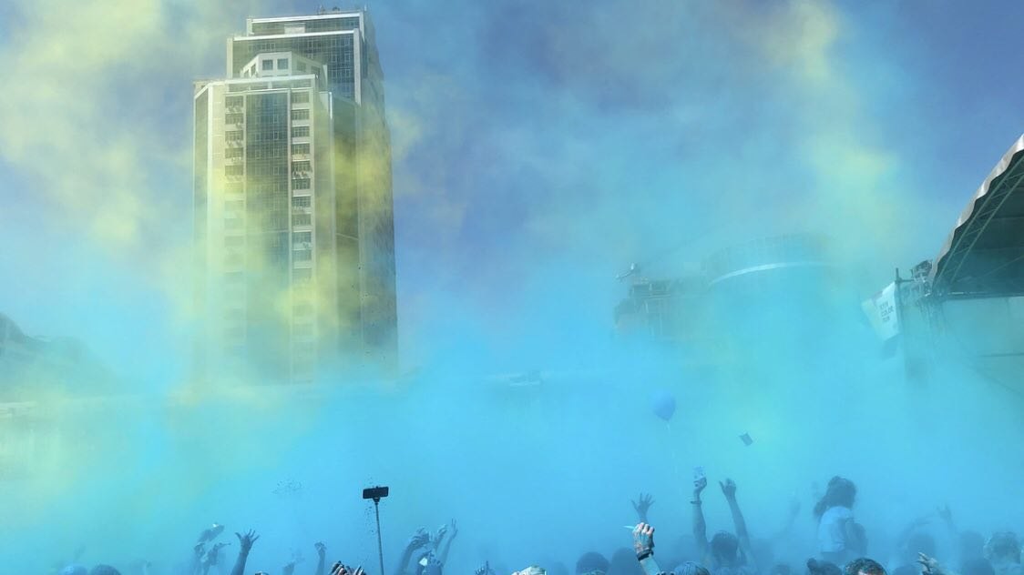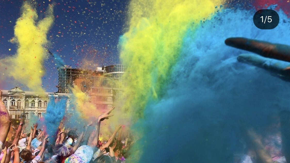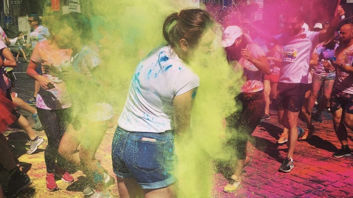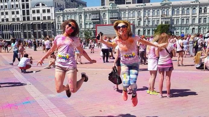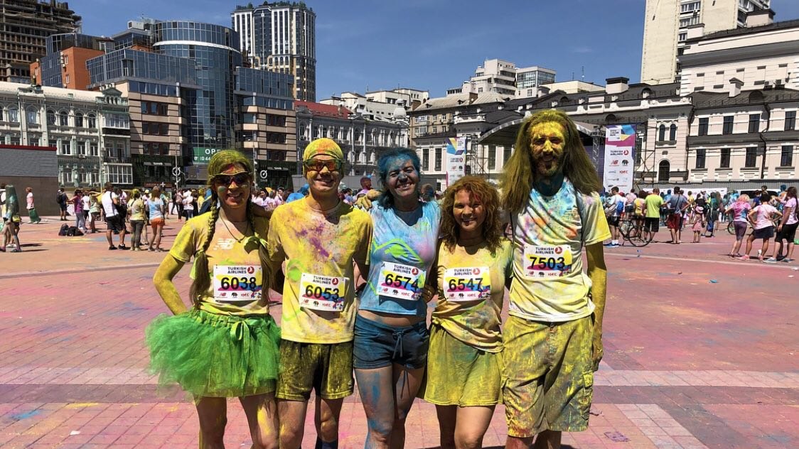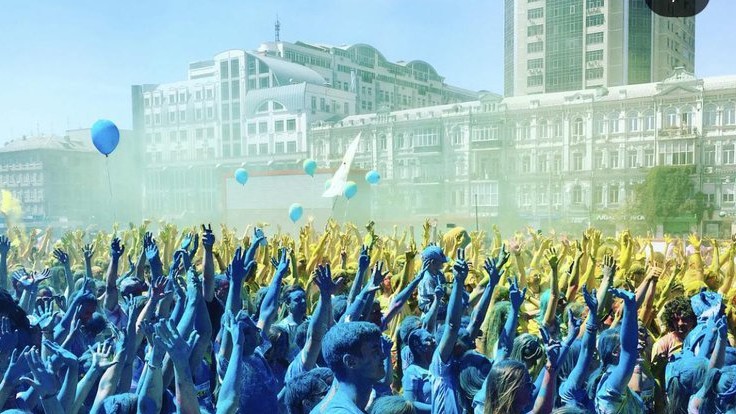 В Киеве прошел 5-й юбилейный забег Kyiv Color Run, участники которого совмещают бег с индийским праздником красок Холи. Главное правило забега – все стартуют в белом, а к финишу приходят разноцветными. Каждый участник получил на старте белую футболку и пакет краски, а на финише – воду. Участники могли выбрать дистанции бега: для взрослых три или шесть километров, а также малые дистанции для детей и собак. Полный шестикилометровый маршрут проходил от Троицкой площади до Николаевского костела и назад. Волонтеры обсыпали бегущих разноцветной краской.