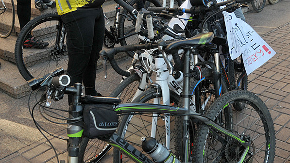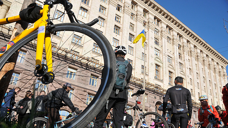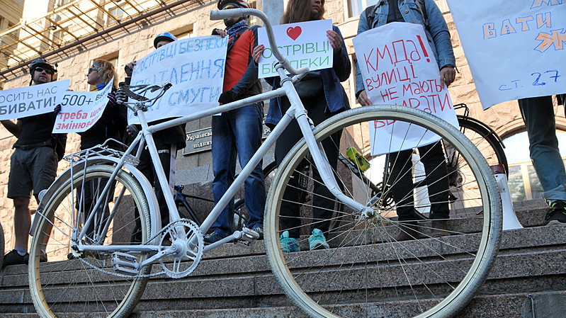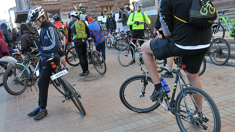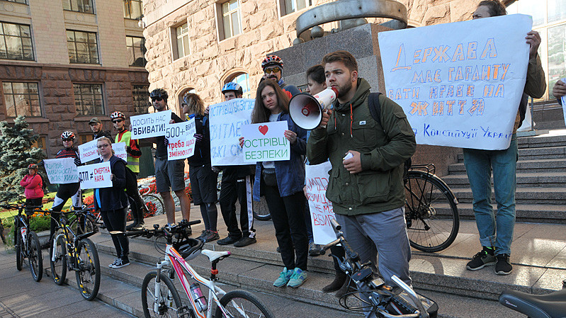 Велосипедисты в среду, 27 сентября, провели под стенами Киевской городской государственной администрации акцию "Хватит нас убивать".