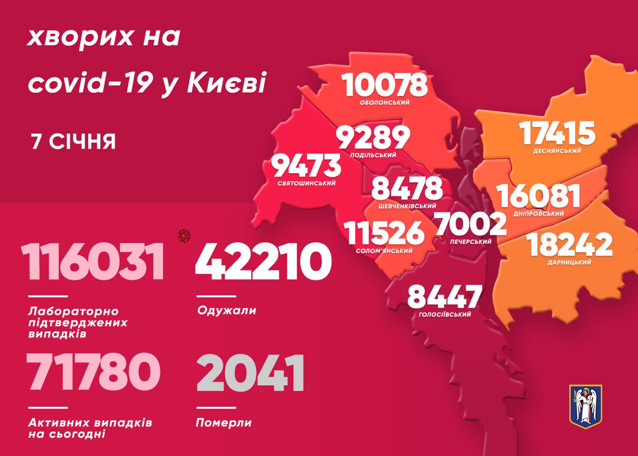 «В Киеве за минувшие сутки обнаружили 731 больного коронавирусом. Умерли 19 человек. Всего за период пандемии в столице 2041 летальный случай от вируса. Подтвержденных случаев заболевания в Киеве на сегодня уже 116 031», - написал Кличко
