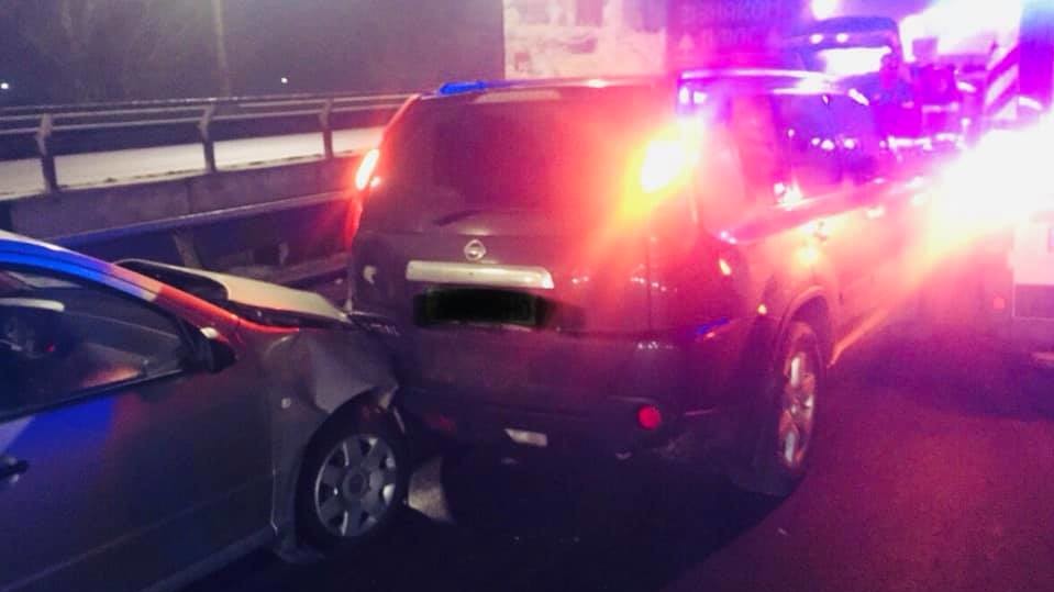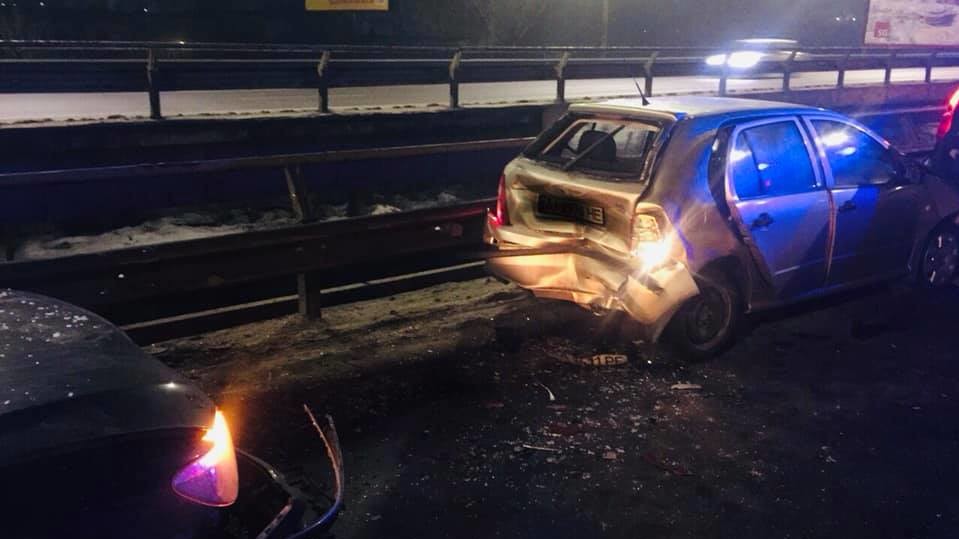 В 20:36 на горячую линию "102" поступило сообщение о ДТП без пострадавших: на Южном мосту Skoda "догнала" Nissan. Прибывшие на вызов патрульные припарковали служeбную Toyota Prius перед Nissan'ом. Между этими автомобилями находилась патрульная, которая оформляла протокол. В это время BMW замглавы Голосеевского района, двигаясь в сторону Левого берега, врезался в стоящий автомобиль Skoda, который, в свою очередь, снова ударил Nissan, и полицейскую зажало между двумя машинами.