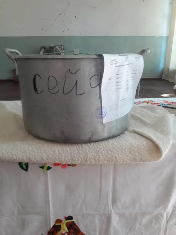В одном из населенных пунктов Кировоградской области члены избирательной комиссии вместо сейфа используют кастрюлю. Посудину, как и полагается, опечатали и написали на ней "сейф".