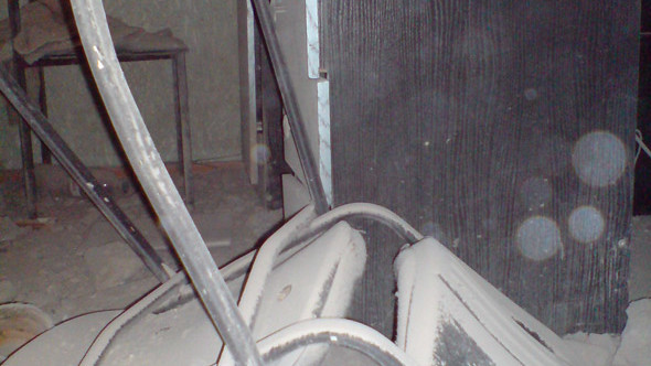 Снаряд попал в многоэтажный дом №24 по улице Ленина. Угодив в квартиру на третьем этаже и всего лишь разбудив спавшего хозяина, снаряд прошел через второй этаж отделения "ПриватБанка" и окончательно рванул в редакции газеты.