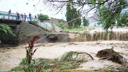 В курортном селе Морское, близ Судака, случилось ЧП. С начала этой недели по всему Крыму шли обильные ливни, в итоге, 3 июня, обычно тихая и спокойная речка Шелен вышла из берегов и вынесла бурлящие потоки глины, грязи и мусора прямо в поселок. На своем пути вода снесли часть бетонного забора на стадионе, разрушила несколько мостиков в районе улицы Озен Баю.