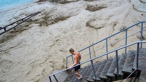Огромные деревья, глыбы камней, кучи мусора стремительным потоком неслись в море, образуя там "островок". К вечеру стихия успокоилась.