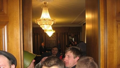 В ходе митинга в Луганске у памятника Шевченко протестующие захватили здание областной государственной администрации и ворвались в кабинет губернатора Михаила Болотских.