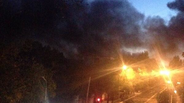 По данным издания, возле захваченного протестующими здания городского совета горят шины. Дым очень густой и его видно за несколько километров.