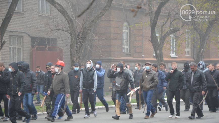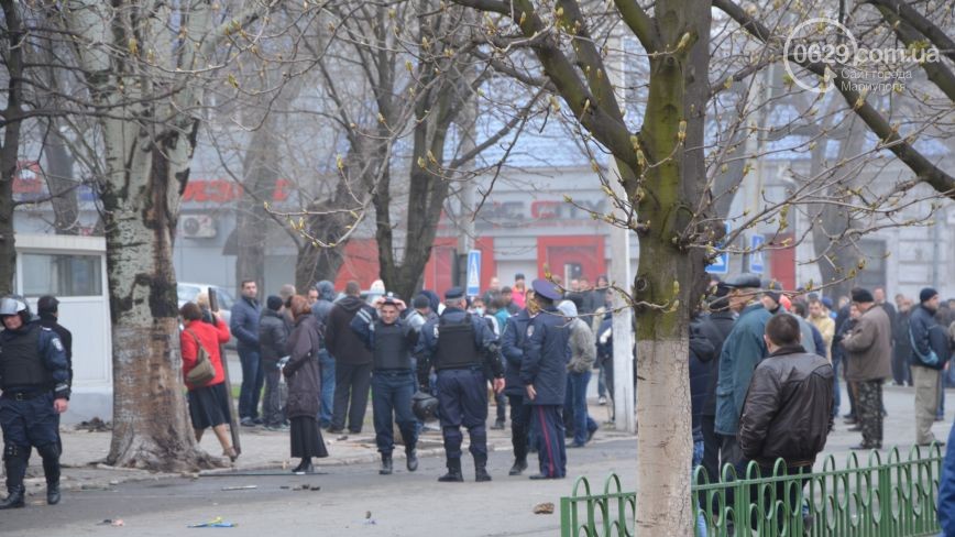 "Мы стояли мирным митингом в защиту мариупольской милиции, - рассказали участники акции изданию 0629.com.ua. - Вдруг к зданию пришло около 150 парней в масках и с битами в руках. Они набросились на нас, стали наносить телесные повреждения и бросать взрывпакеты".