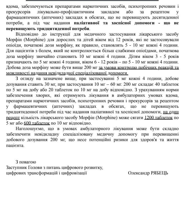 Андрей Гардашников, в свою очередь, назвал ответ Службы здоровья "шаблонной отпиской" и подчеркнул, что искусственное ограничение создания электронного рецепта на таблетки морфина в дозе более 200 мг в сутки не предусмотрено ни одним законодательством и обрекает неизоечимо больных людей на страдания от невыносимой боли.