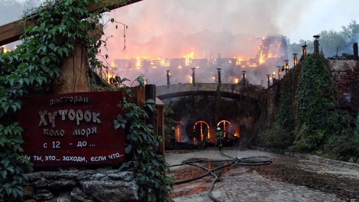"Сегодня на Ланжероне загорелся ресторан "Хуторок". Огонь быстро распространился по деревянному зданию. Сложность тушения заключается в том, что заведение находится в многолюдном месте, на выезде с Ланжерона образовалась пробка из машин, которая затрудняет проезд пожарных", - говорится в сообщении.