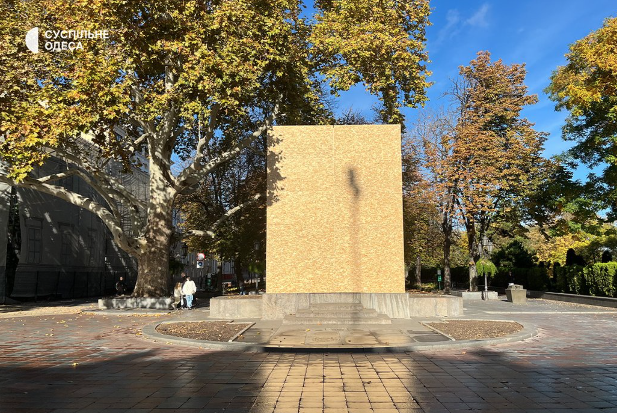 Памятник российскому поэту Александру Пушкину, расположенный на Приморском бульваре в Одессе, который неоднократно был причиной публичных дискуссий, закрыли ориентированно-стружечными плитами, сообщает "Суспільне".