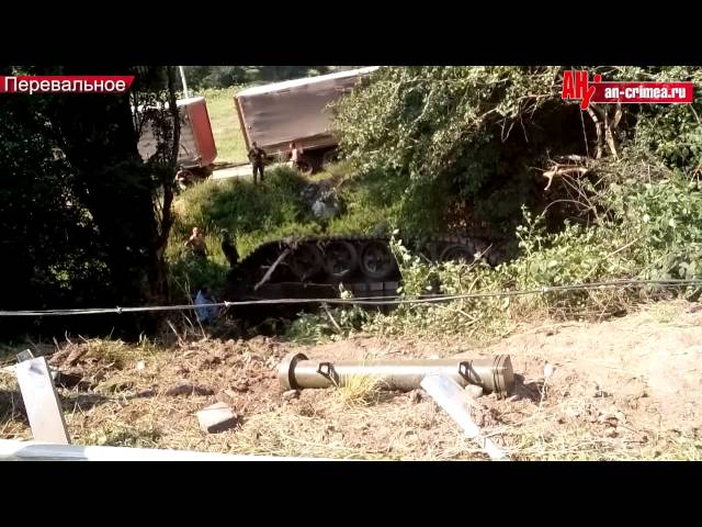 В оккупированном Крыму неподалеку от села Перевальное перевернулся танк.