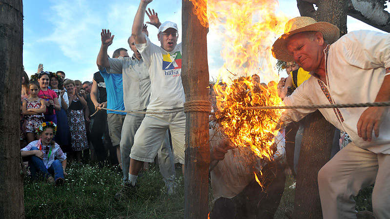 В рамках праздника Ивана Купала, который традиционно отмечается в ночь на 7 июля, в Национальном музее народной архитектуры и быта в селе Пирогово, что под Киевом, гостей знакомили с древними языческими обычаями связанными с водой, огнем и травами.