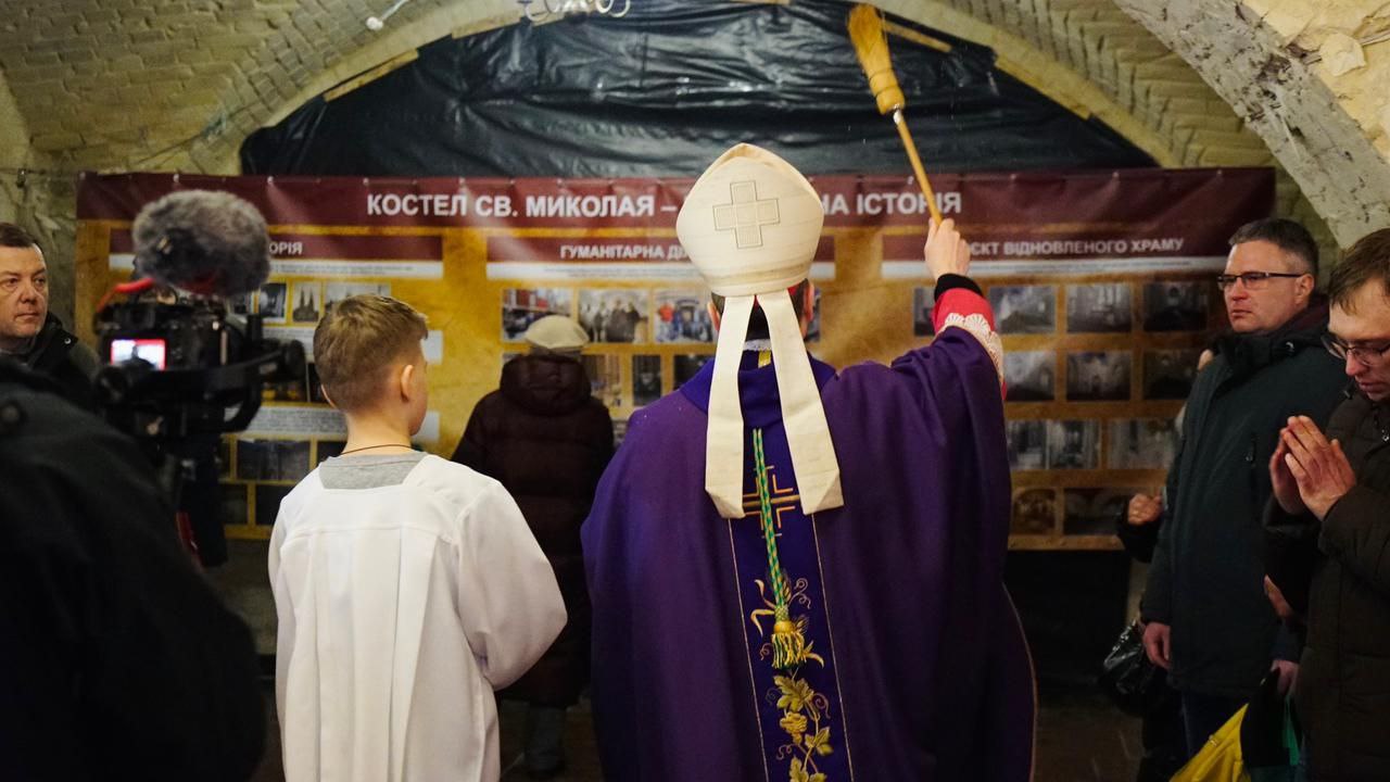Пункт обогрева разместили в подвальной части костела, которая также может служить укрытием. Он будет работать ежедневно с 14:00 до 18:00.