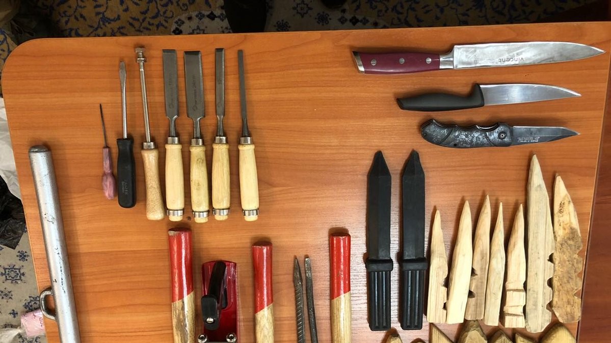 Во время обысков в камерах экс-бойцов роты милиции особого назначения "Торнадо" в Лукьяновском СИЗО правоохранители изъяли запрещенные предметы. Фотографии изъятых предметов обнародовала пресс-секретарь генпрокурора Лариса Сарган на своей странице в Twitter во вторник, 14 августа. При этом она не уточнила, когда именно и в каких камерах были сделаны фотографии.
