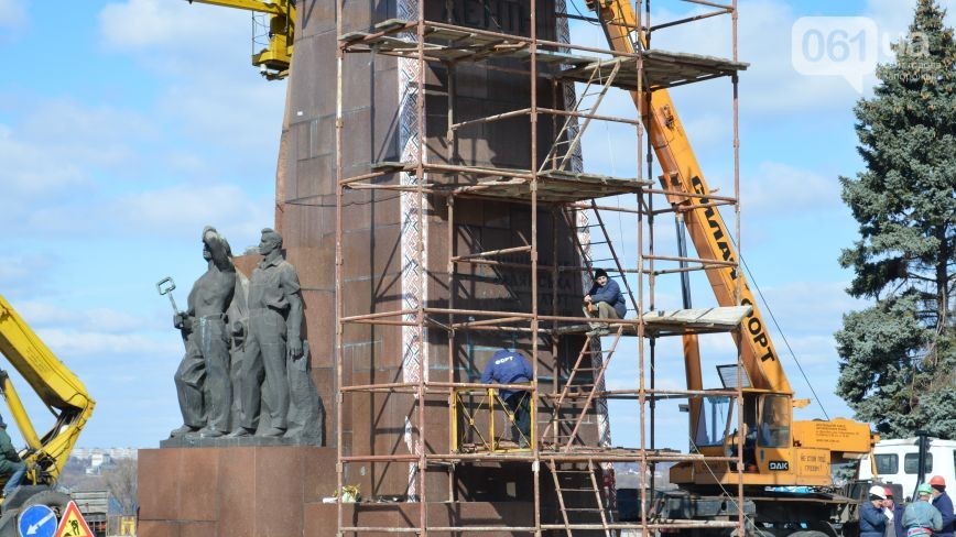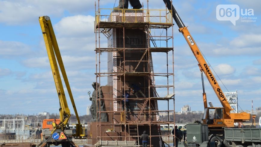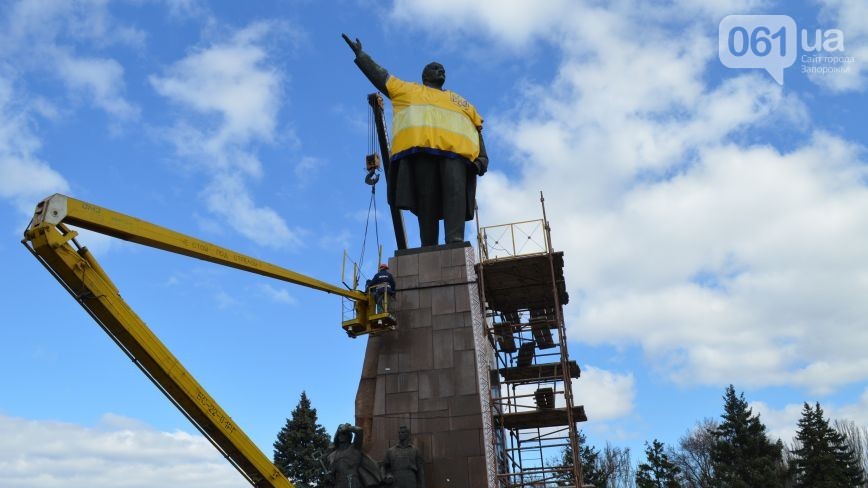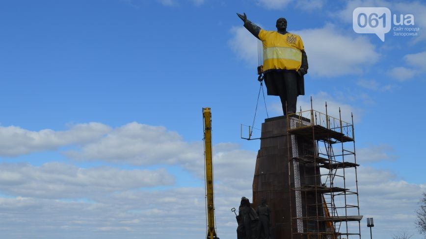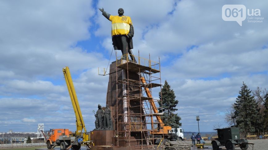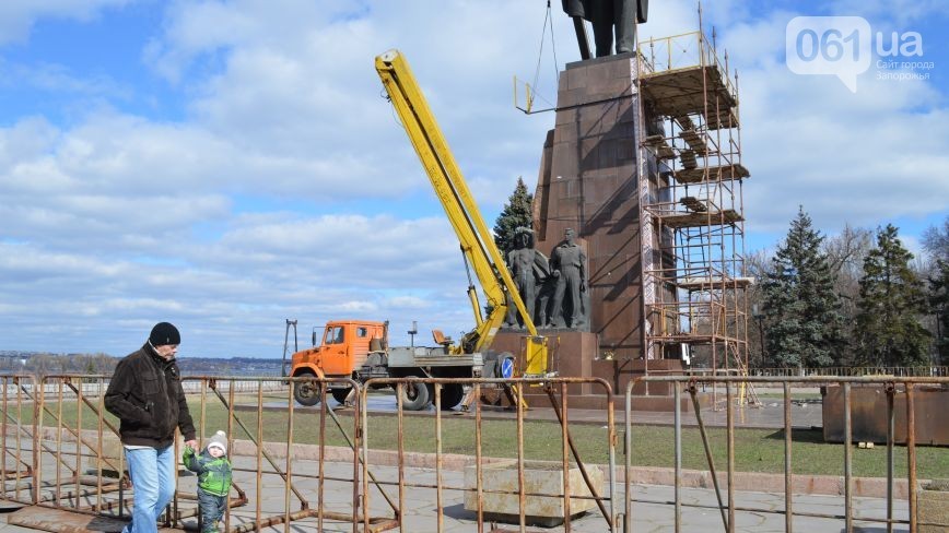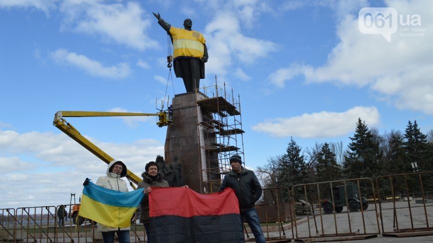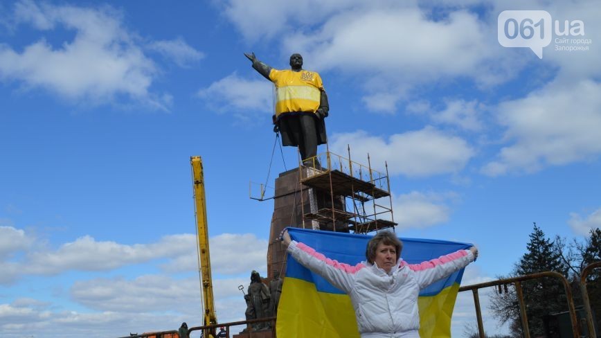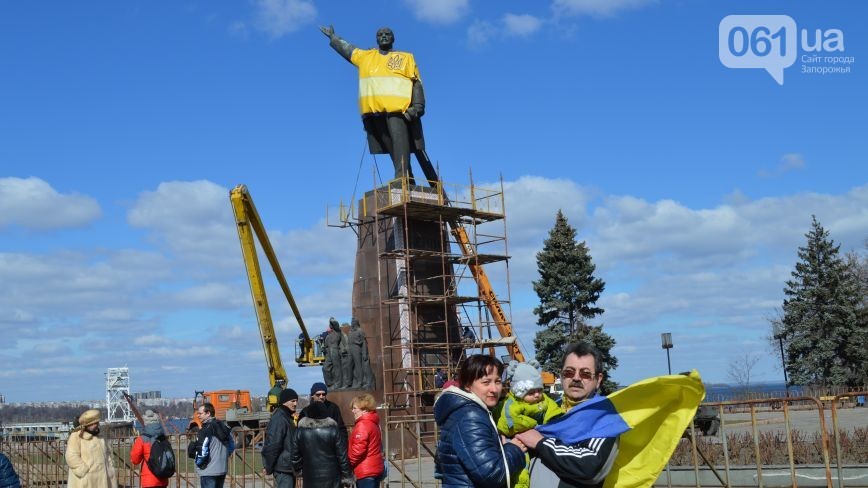 В Запорожье 15 марта завершается подготовка к демонтажу памятника Ленину в рамках закона о декоммунизации. Снос монумента стал предметом обсуждения у жителей города. Запорожцы приходят сфотографироваться с украинским флагом на фоне памятника, а некоторые жители бурно дискутируют о необходимости сноса монумента.