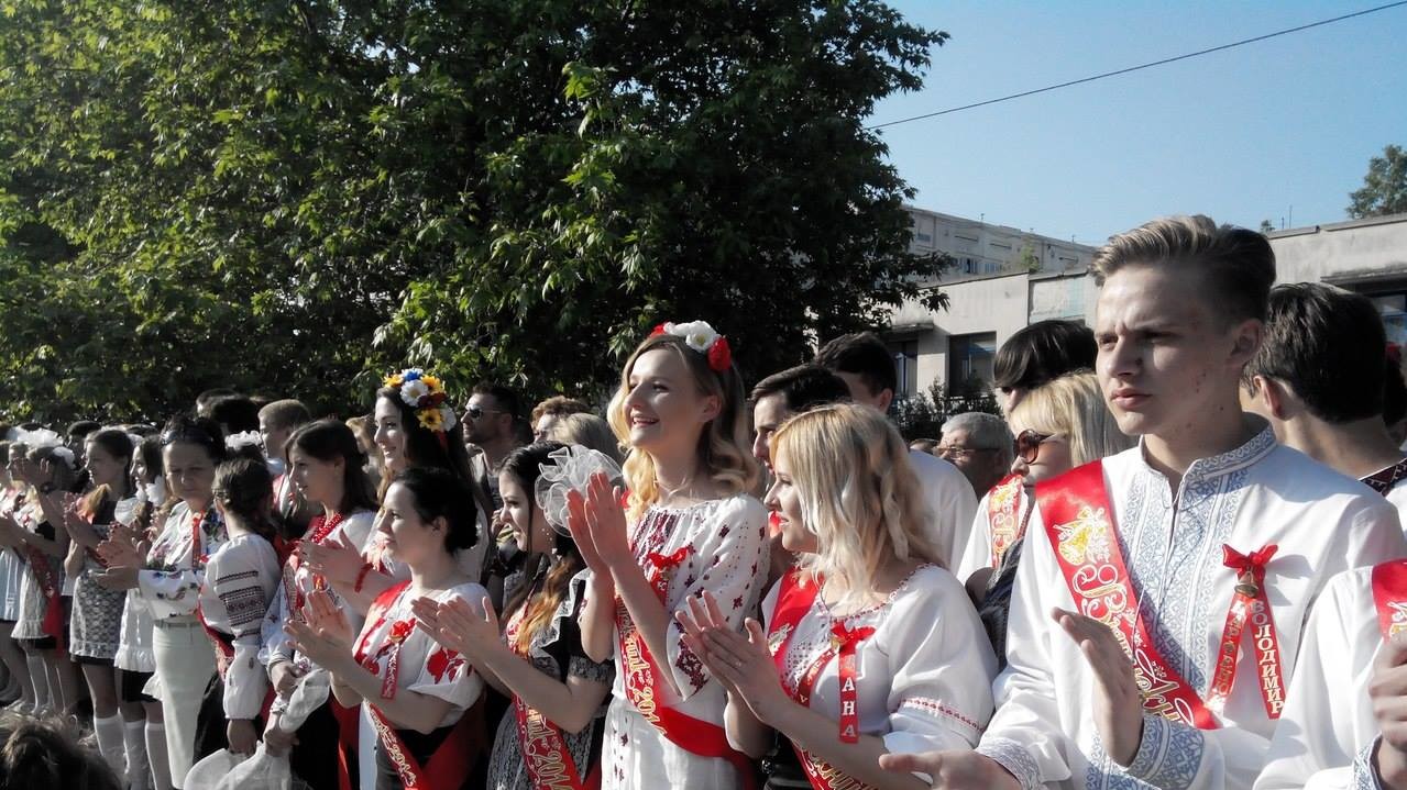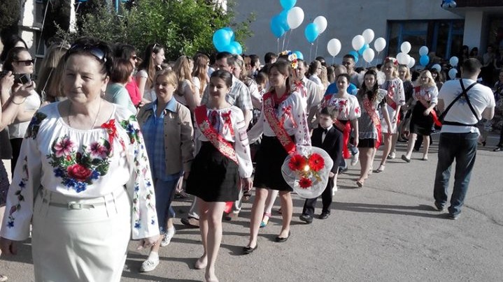 Учащиеся Севастопольской гимназии № 5 имени Леси Украинки пришли на последний звонок в украинской национальной одежде.