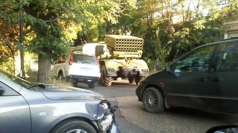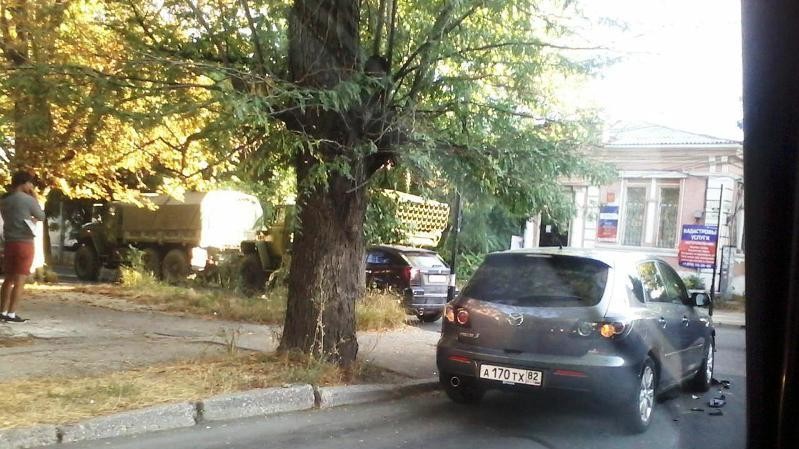 В оккупированном Симферополе на улице Гоголя РСЗО БМ-21 "Град" столкнулся с автомобилем "Мазда 3", сообщает Крыминформ.