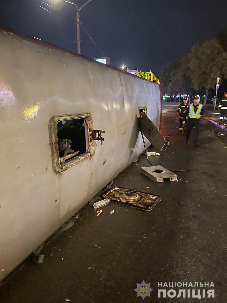 "Сегодня в 01:50 по спецлинии 102 поступило сообщение о ДТП с участием автобуса на улице Елены Телиги. Предварительно правоохранители установили, что водитель транспортного средства не справился с управлением и наехал на бордюр, в результате чего автобус перевернулся. В результате восемь пассажиров, среди которых четыре малолетних ребенка, получили телесные повреждения", - уточняется в сообщении.