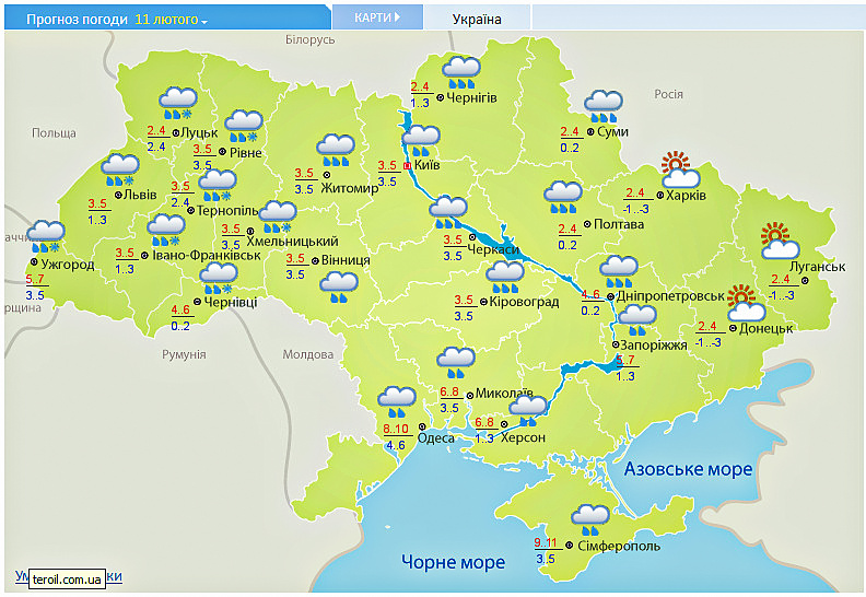 В Киеве 11 февраля также ожидается дождь. Ветер южный, юго-западный, 7-12 м/с, порывы 15-20 м/с. Температура ночью и днем 3-5° тепла.