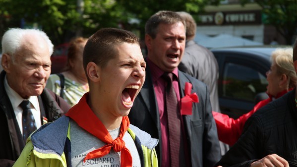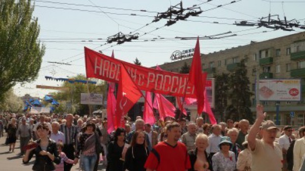 Около 1000 человек под флагами Донецкой народной республики и Компартии Украины прошли по центру Мариуполя. После демонстрации у стен горсовета Мариуполя состоится митинг и праздничный концерт, а вечером ДНР запустит в небо фейерверки. На митинге собралось около 5 тыс. человек.