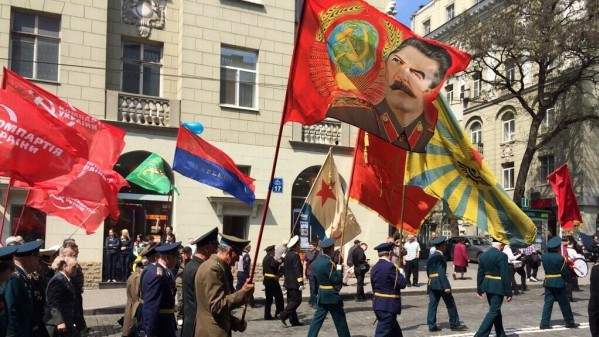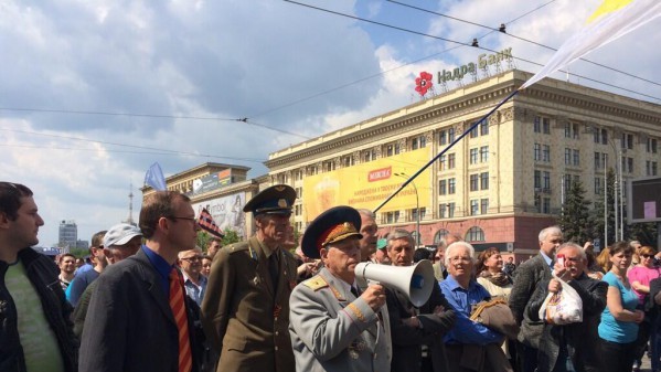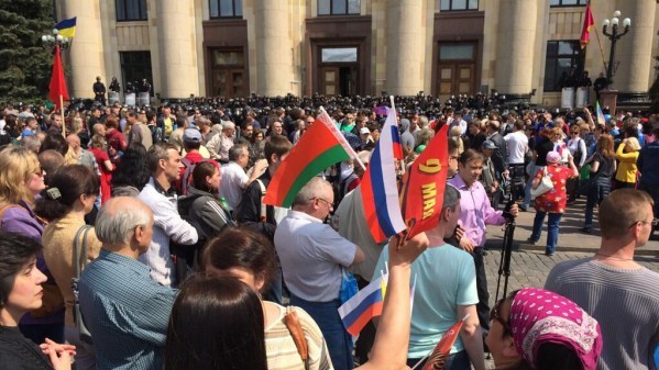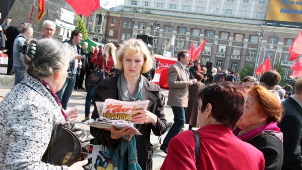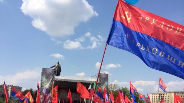 В Харькове коммунисты и пророссийские активисты пришли на площадь Свободы с георгиевскими лентами. Активисты большой организованной колонной, численностью около двух тысяч человек, пошли к памятнику Ленину по улице Сумской. На площади Свободы находятся около трех тысяч человек. Там установлена большая сцена.