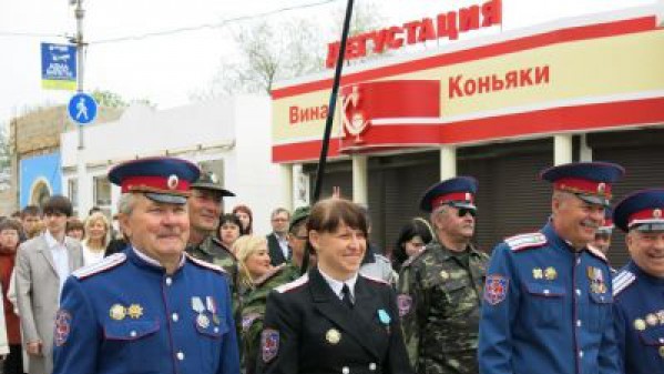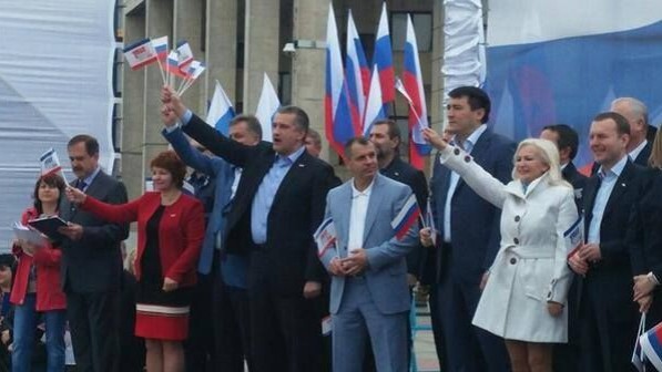 Приветствовали участников демонстрации самопровозглашенные руководители полуострова Сергей Аксенов и Владимир Константинов, к которым также присоединилась объявленная украинскими спецслужбами в розыск прокурор Крыма, Наталья Поклонская.