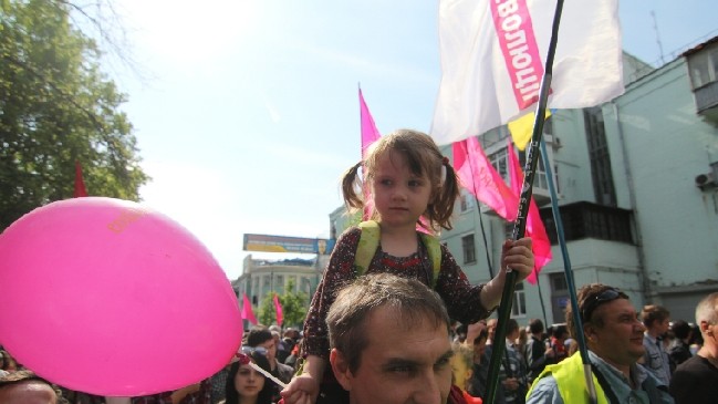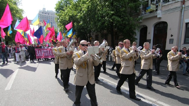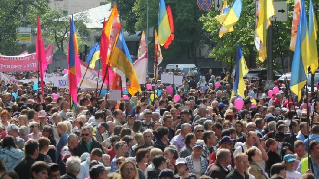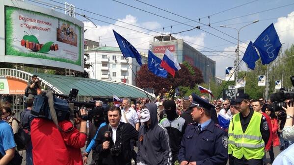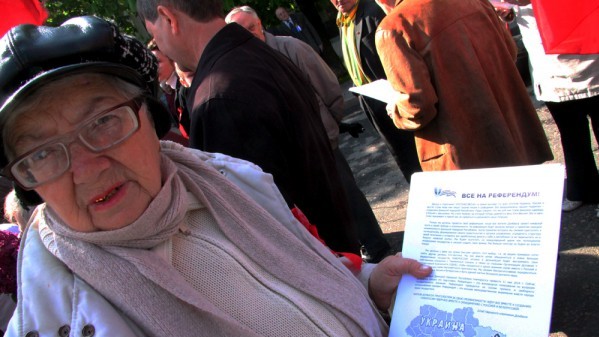 Участники проходящей 1 мая в Киеве первомайской демонстрации потребовали провести всеукраинский референдум 25 мая. Более 2 тыс. человек собрались возле станции метро Арсенальная и прошли маршем до здания Кабинета министров. Участники акции скандировали лозунги в поддержку территориальной целостности Украины.