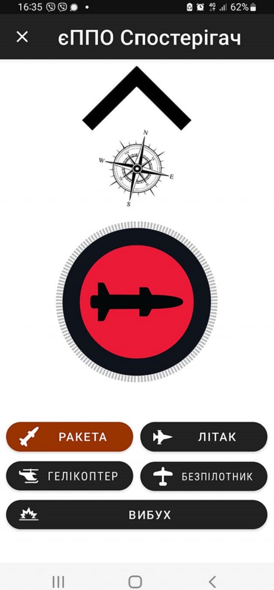 «Как это работает? Если вы увидели воздушную цель, например крылатую ракету или дрон-камикадзе "Шахед", вам нужно только открыть "єППО" на своем смартфоне, выбрать тип воздушной цели, направить смартфон в направлении движения цели и нажать большую красную кнопку. Все. А через несколько секунд специалисты ПВО увидят вашу отметку на карте, она дополнит радиолокационную информацию и летающая смерть будет сбита», – написал он.