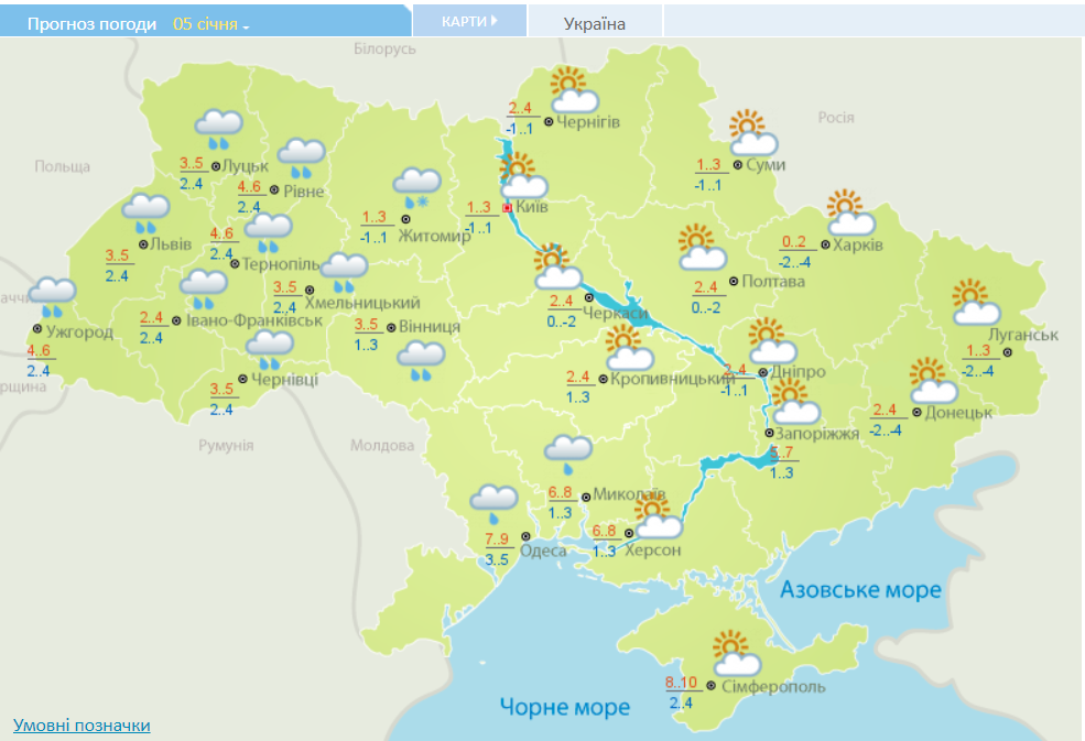 5 января мокрый снег возможен только в Житомирской области, на остальной территории, кроме Востока, следует ожидать дожди.